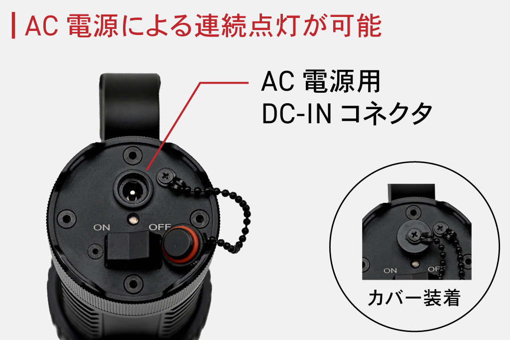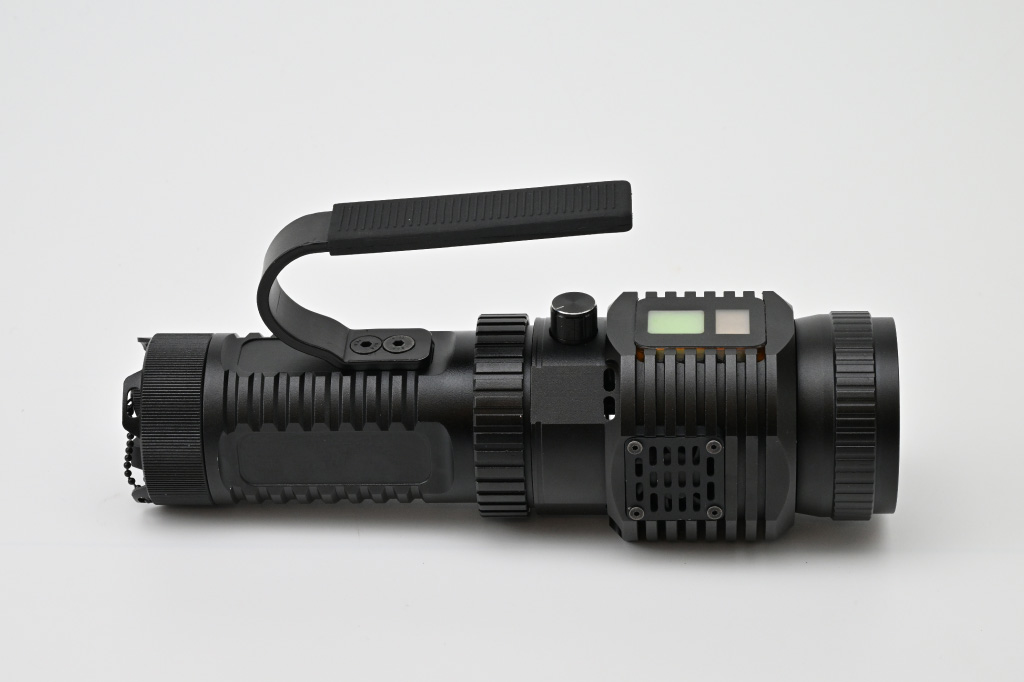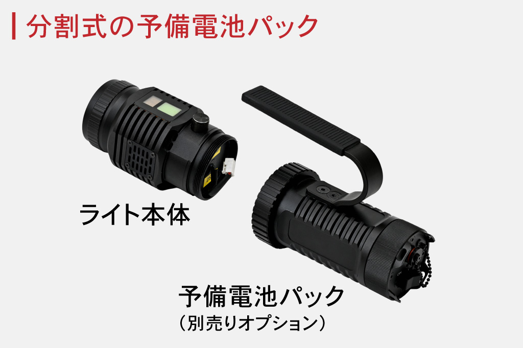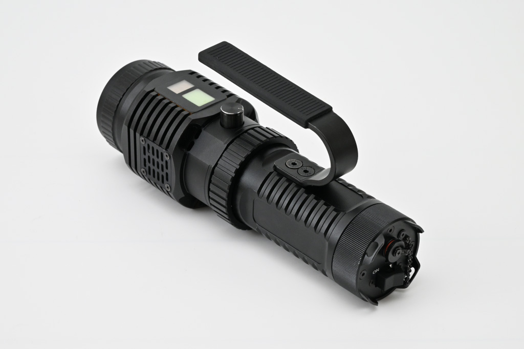 さらに、点灯ボタンの長押しでストロボ点滅モードが起動。万が一の拘束や安全確保が必要な場面では、ライト使用者がストロボを照射することで、対象者の動きを制限しつつ、他の対応者の行動を安全にサポートします。