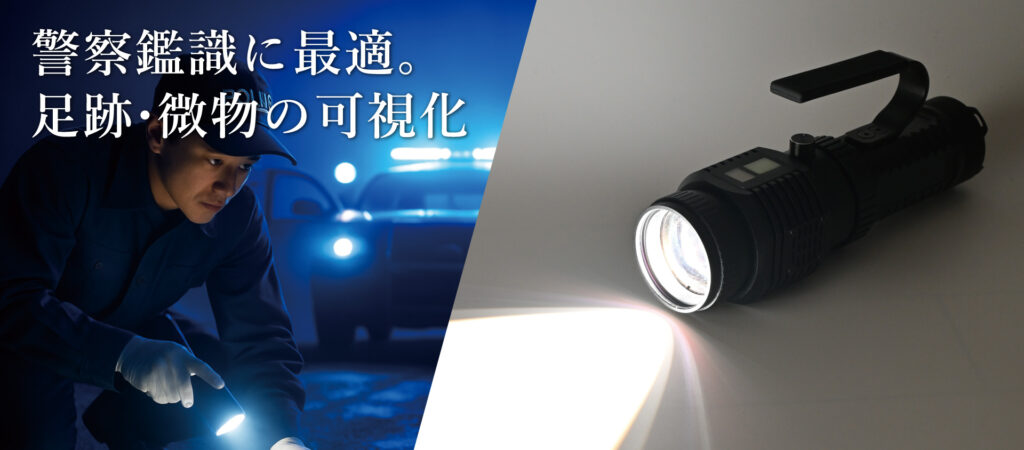 オールラウンダーは、配光調整機能と無段階調光機能の組み合わせにより、警察鑑識現場での痕跡確認に最適なライトです。