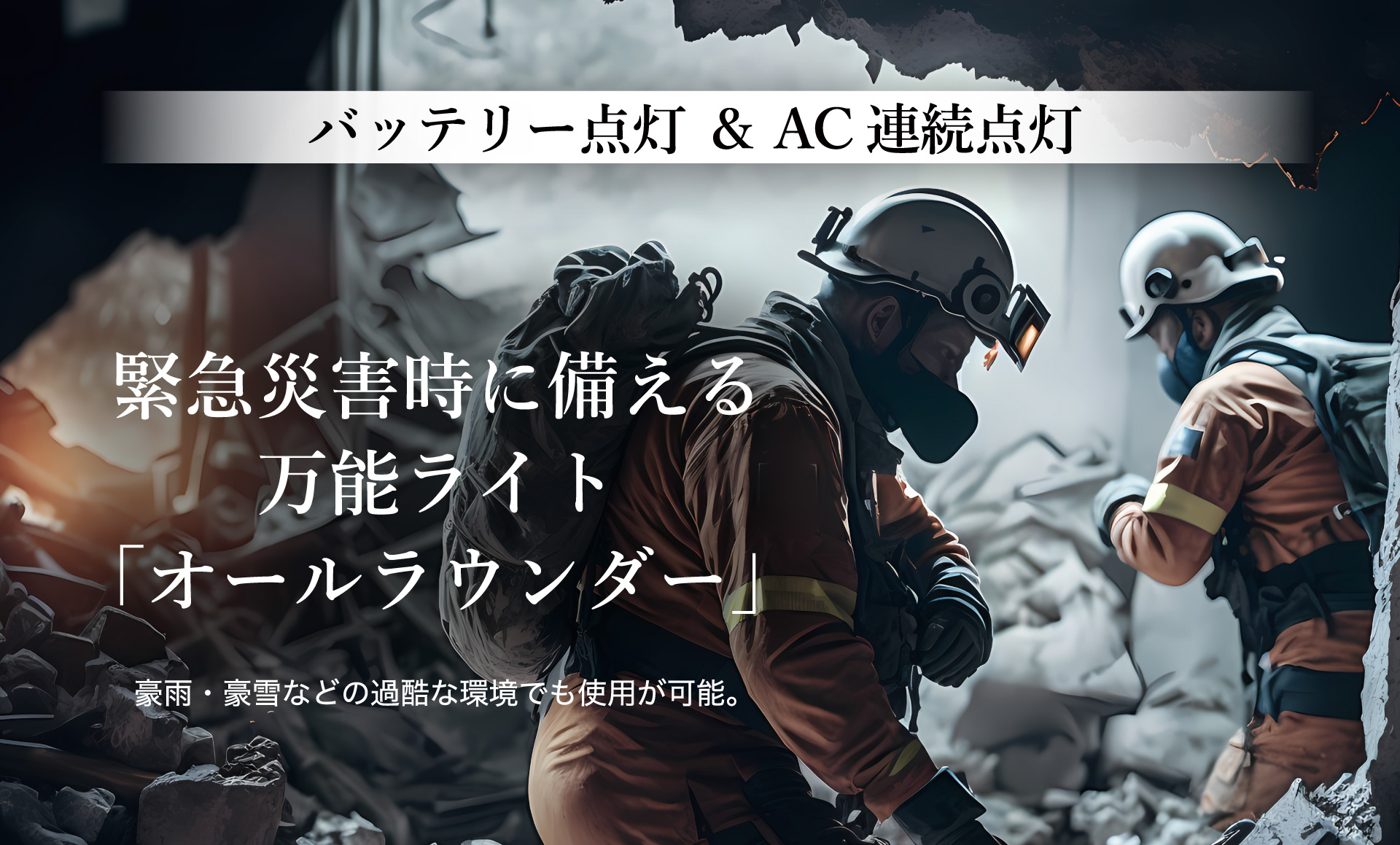 オールラウンダーは、初動時の「捜索」「救助」に役立つほか、その後は広範囲を照らす投光器としても活躍します。