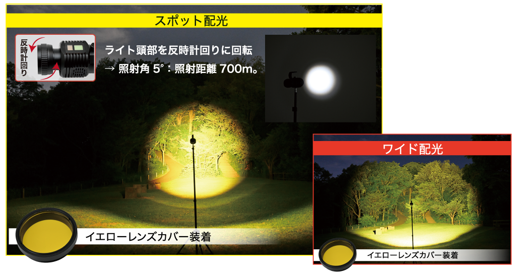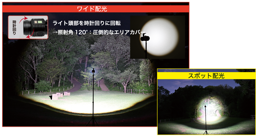 ワイド配光 ⇔ スポット配光現場の状況に合わせて最適な光を―