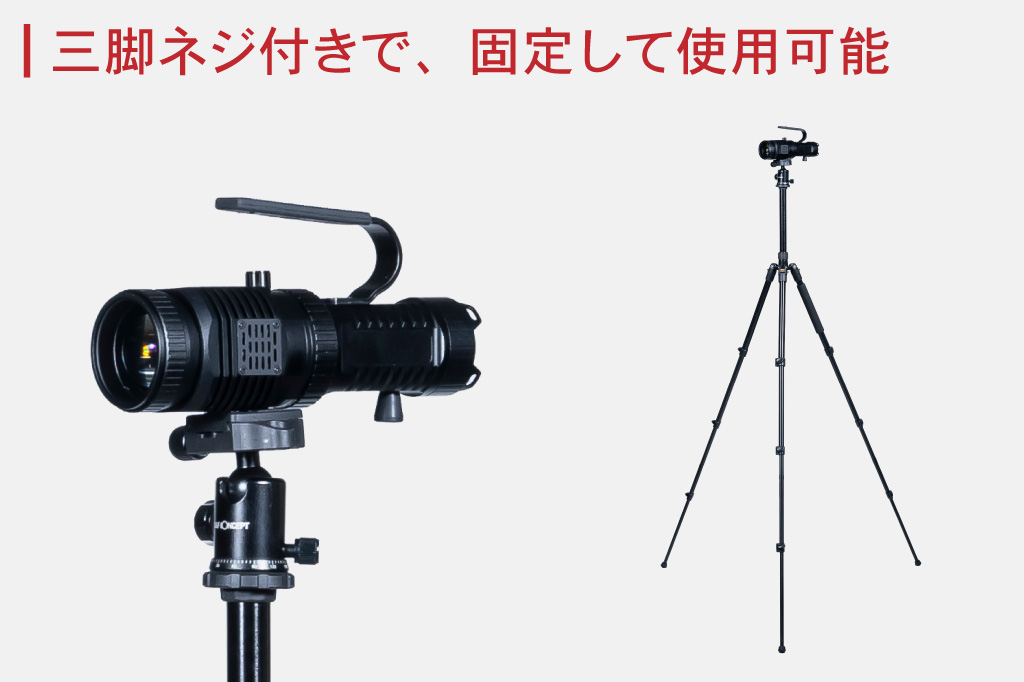 スポット配光は照射角5度、最大照射距離は700mで遠距離の対象を正確に捉えます。